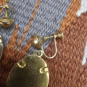 Vintage Needlepoint Cottagecore Flower Floral Earrings & Brooch Set