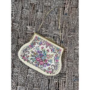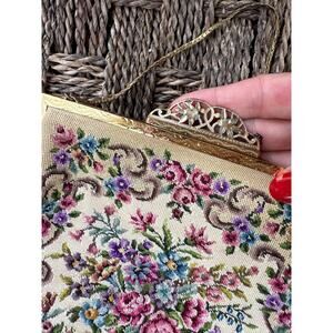 Vintage Needlepoint Floral Clutch Handstitched Filigree Clasp