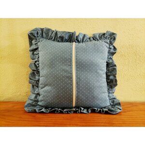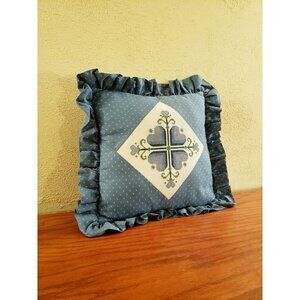 Vintage Needlepoint Petit Point Hearts Ruffle Pillow Farmhouse Cottage 15 x 16