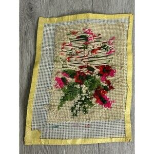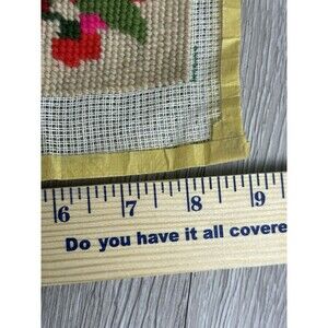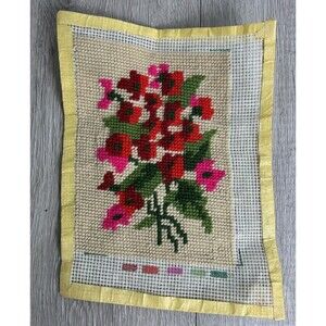 Vintage Needlepoint Red Pink Flowers Completed Finished Unframed 7"x9"
