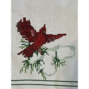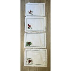 Vintage Needlepoint Table White Place Mat Handmade 4 Piece Cardinal