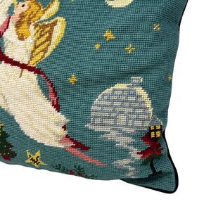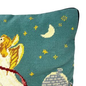 Vintage Needlepoint Throw Pillow Christmas Angel Stars Tree House and Moon