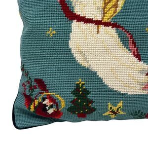 * Non traditional Christmas needlepoint pillow color. Background of pillow is done in light teal.