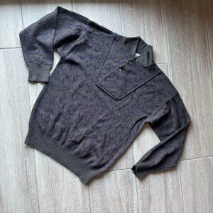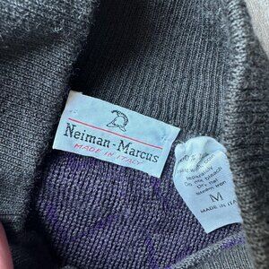 Classic luxury meets modern detail in this vintage Neiman Marcus wool sweater. Made from 100% wool in a versatile grey shade, it’s elevated with subtle purple accents for a unique touch.