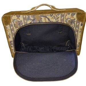 Vintage Neiman Marcus Floral Tapestry & Suede Suitcase With Lock