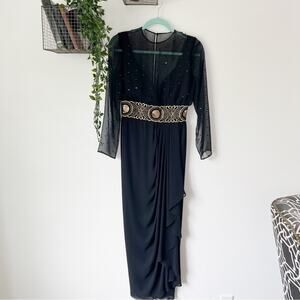 Sheer black with gold belt embroidered detail