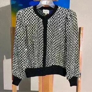 vintage Neiman Marcus by partique new york 1980’s black silver sparkly sequined semi-sheer evening cardigan