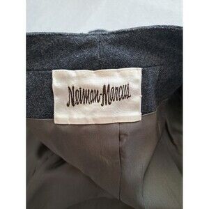 Vintage Neiman Marcus Blazer Grey, one button, short blazer, straight square cut. Material feels and looks like wool, but there is no care tag to confirm material. No size tag as well, please review photos for measurements. By looks it might be a medium.