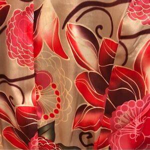 Inside of jacket is a fabulously contrasting beautiful satin with a deep gorgeous orange, red, and gold design