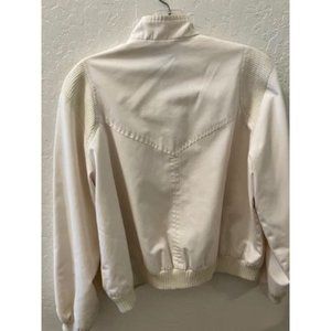 Vintage Nelson Hall off white jacket in size L. Tag on pocket says Pan-Asia Fashion. Measures sleeves from shoulder seam to cuff 23". Pit to pit 21". And in back from below collar to end of jacket 21.5". Great retro look, very members only,