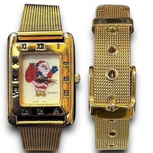 Vintage Nelsonic Quartz Gold Toned Santa Claus Watch Signs of wear ~ see photos! Some discoloring in the band and some scratches The watch does work!