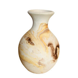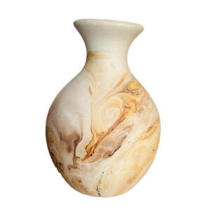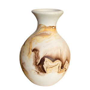 This Vintage Nemadji Pottery Bud Vase stands 4 inches tall and features the iconic hand-swirled design in natural earthy tones. Made in the USA, this unglazed studio art pottery vase showcases the bold marbling patterns that Nemadji is known for—often in hues inspired by the American Southwest. A lovely little piece of American pottery history—perfect for collectors or decor enthusiasts!