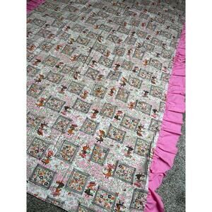 Vintage Neon Pink Quilt Blanket Hand Tied Girl & Flowers 76” X 51” Hollie Hobbie