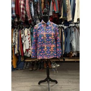 Vintage Neon Pink and Orange Pattered Blue Slick Jacket Size Large