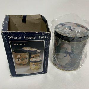 Vintage Nesting Metal Tin Canisters Winter Geese Ducks Set of 3
