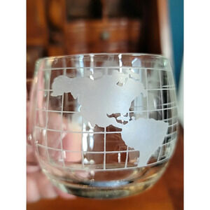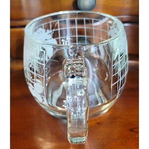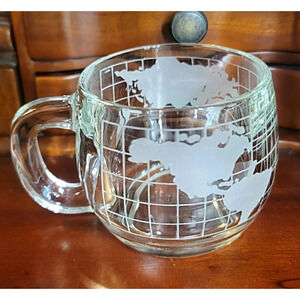This heavy glass coffee mug feature an etched old world map design and holds 8 oz.