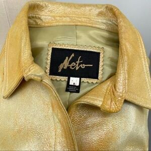 Vintage Neto yellow metallic sheen leather shaket jacket size 8 Y2K BoxM