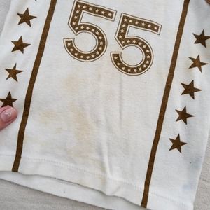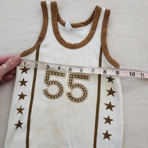 Vintage K-Mart brand cream and caramel tank top with stars and #55! Note some light spots shown on front and back. Please see all photos for condition and measurements