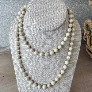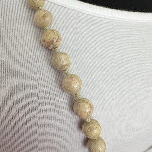 Vintage Neutral Hued Honed Jasper Stone Bead Long Necklace 32”