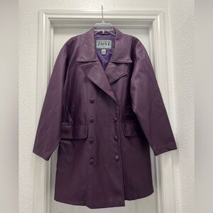 Vintage Neutral Zone Plus Purple Faux Leather Coat Jacket 20W Double Breasted