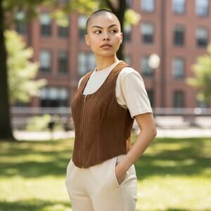 Vintage Nevada Blue Genuine Leather Vest Womens M Brown Zip Western Hippie Boho