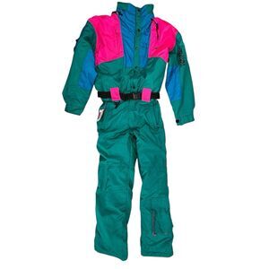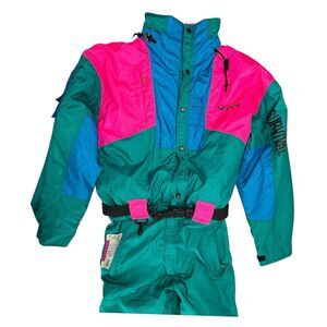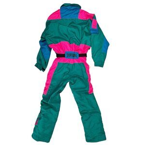 Vintage Nevica Ski Suit One Piece Snowsuit Snow Bib Neon 90s Retro Pink Teal 36