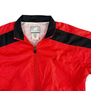 Vintage New Balance Jacket Womens MEDIUM Red Black Two Tone Stripe Athletic 90s