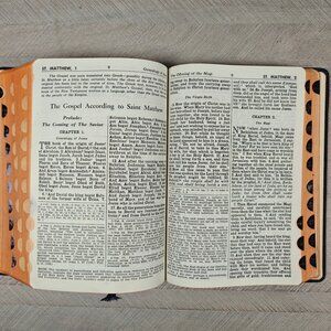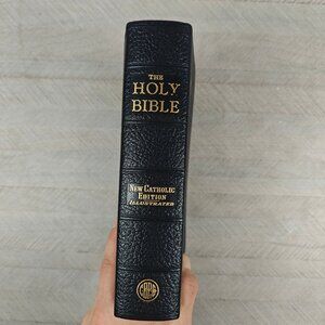 Vintage New Catholic Holy Bible Illustrated Black Leather Gold-Edged Indexed