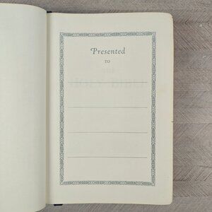 Durable Holy Bible with black leather cover, illustrated pages, gold-edged tabs, and a presentation page for personalization or gifting.