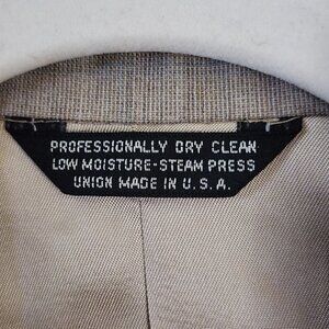 Vintage NWT DeadStock Worsted Wool Blend One Button Beige Blazer, Size 10. Pit to pit 19", shoulder to hem 22", Subtle Plaid With Light Blue, Notch Collar, Pockets, Fully Lined, Union Made In USA, Shoulder Pads, Amazing Neutral Vintage Piece.