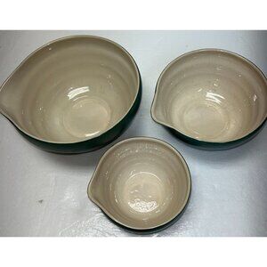 Vintage New Debco Teal Green & Cream Ceramic Mixing Bowl Set Of 3 Collectable
