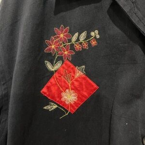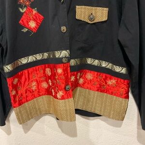 Vintage New Directions Jacket Black w/Red Satin & Gold Embroidery Women's Size M