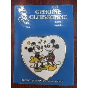 This vintage Disney cloisonne Mickey and Minnie heart love pin is a rare and unique collectible from the 1970s. Produced by Walt Disney Productions, this single pin features the beloved Mickey Mouse characters in a genuine cloisonne design. Perfect for Disneyana collectors or fans of trading pins, this Disney pin showcases the classic love story between Mickey and Minnie in a timeless and charming way.