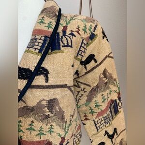 Vintage New Identity Tapestry House Deer Knit Cardigan Sweater, Size Small