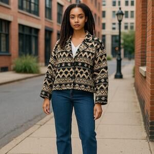 Vintage New Identity Women’s Oversized Cardigan Jacket 3X Black Beige Aztec