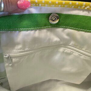 Vintage New Kirra White Canvas Bag with Green Stripes Yellow Trim Purse Beach