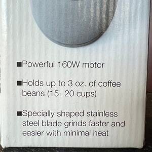 • 3 oz of bean capacity (that means it will hold enough beans to make 15 to 20 cups of coffee)