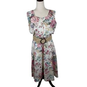Vintage New Looks BoHo Cottagecore Floral Midi dress women’s modest wide straps