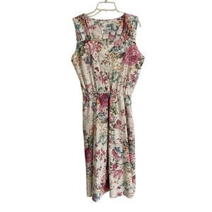 Vintage New Looks BoHo Granny Floral Midi dress women’s *16 modest