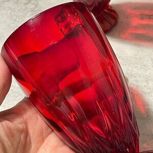 Vintage New Martinsville Janice Ruby Red Set of Four Pressed Glass Depression Glass Footed 8 Ounce Water Goblets Glasses 4-7/8"