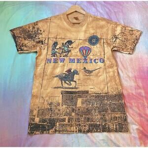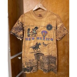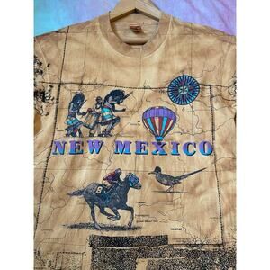 Vintage New Mexico Map T Shirt Size L AOP Tie Dye 1992 Single Stitch 90s Western