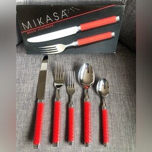 Vintage New Mikasa made in Japan red Braid G4113 pattern 5 pc flatware set