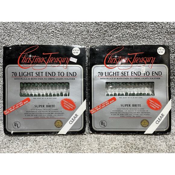 Vintage New Old Stock Christmas Treasury 2 Sets of 70 Clear Lights Super Brite