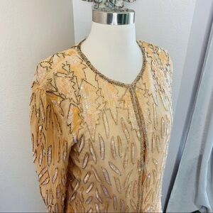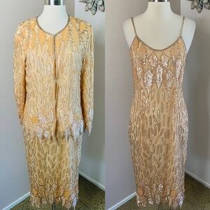 Top Rated Seller, Same Day/Next Business Day Shipping This is a True Vintage Treasure, New With Tags 100% Silk Sequins With Alterations Spaghetti Strap Dress with Jacket, Please See Measurements, Mannequin is a size 6, This a Unique Vintage Piece In Amazing Condition, Completely Covered in iridescent Sequins and intricate beading. Movie Vintage Glamour