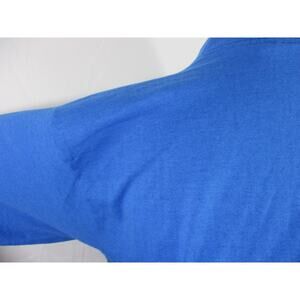 Vintage New Orleans French Quarter graphic tshirt in blue with burnt orange and white graphics. Fruit of the Loom Best cotton tshirt, 50% polyester 50% cotton. Size Large. 19.5" underarm to underarm 8' sleeve 29" length. A small discoloration on the back as pictured.