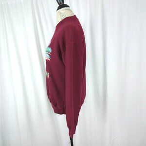 Vintage 1990s Gildan Maroon red sweatshirt with graphic print of "New Orleans Birthplace of Jazz" woman and masquerade mask.
