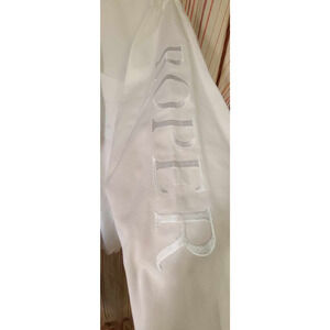 The shirt is white. I took some photos in daylight, which accurately represent the true color. However, some were taken at night under artificial light, making them appear darker. The main photo displays the actual color.