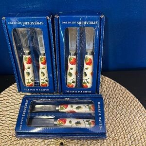 Vintage New Set of 6 Harry & David Strawberry Butter Cheese Ceramic Spreaders