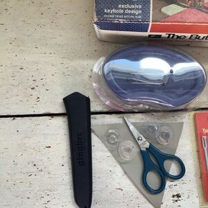 You get everything shown in picture including a vintage pair of electric scissors and a button holder, both work. Plus a small singer hemmer, works.