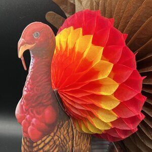 Vintage New Thanksgiving 13" Honeycomb Turkey Centerpiece Decoration Fall Decor